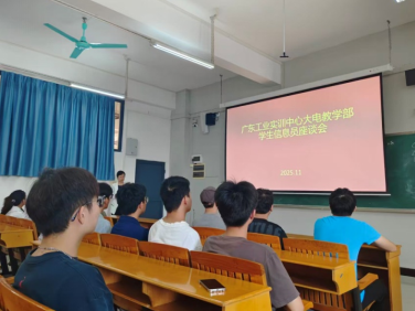 11月12日,工业实训中心大电教学部在白云校区第三教学楼303举行学生信息员座谈会,大电教学部部分教师参加会议,教学督导向英主持会议。